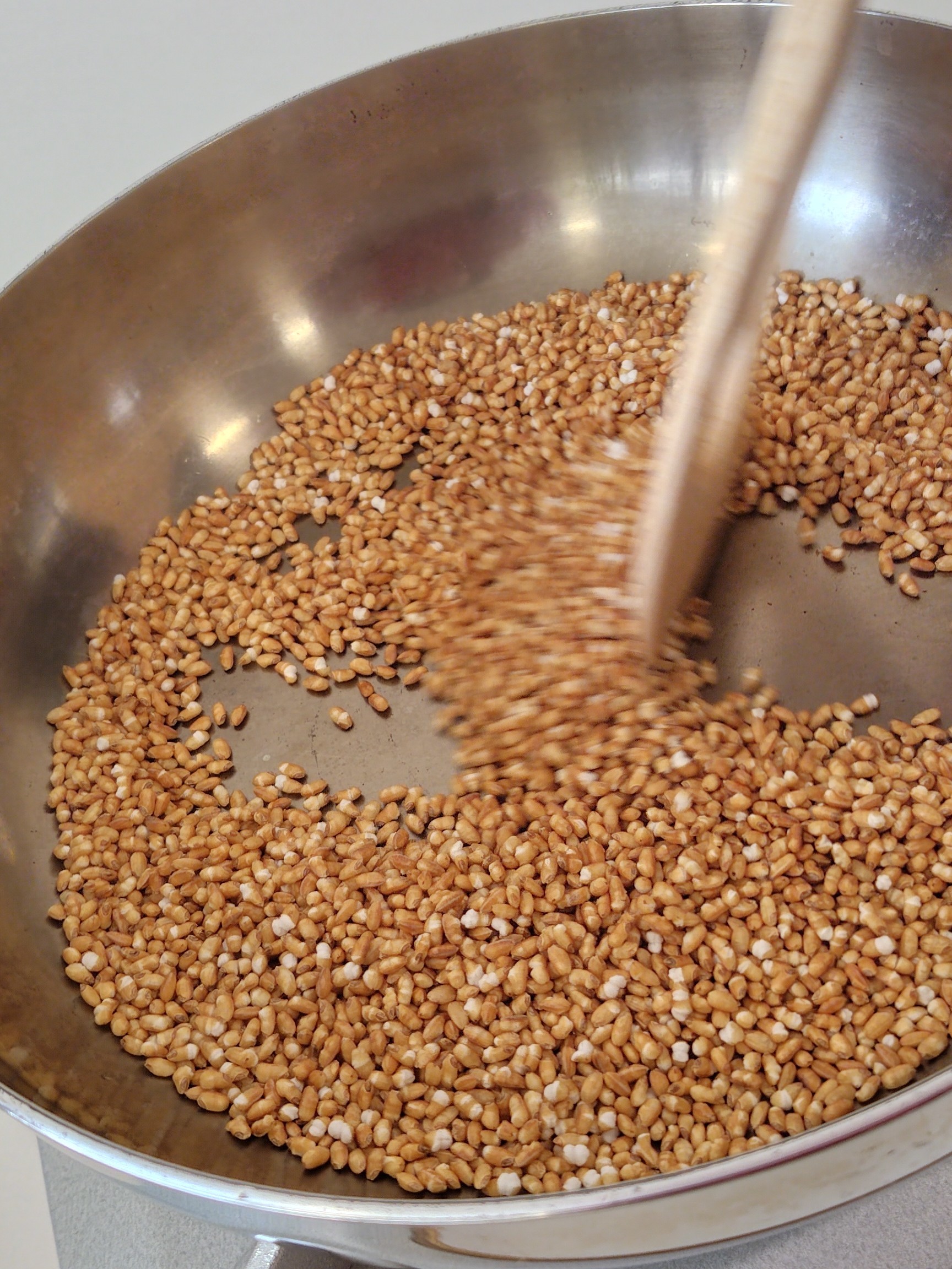 だんだんとパチパチと爆ぜた音を出し始めてお煎餅のような香ばしい香りがしてきます。